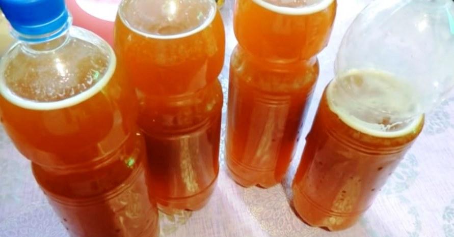 Ставимо каструлю в тепле місце години на 3 – 4. Коли ви побачите на поверхні квасу піну – він готовий, якщо її немає, тоді залиште його дозрівати ще на ніч, потім розлийте по пляшках і помістіть в холодильник.
