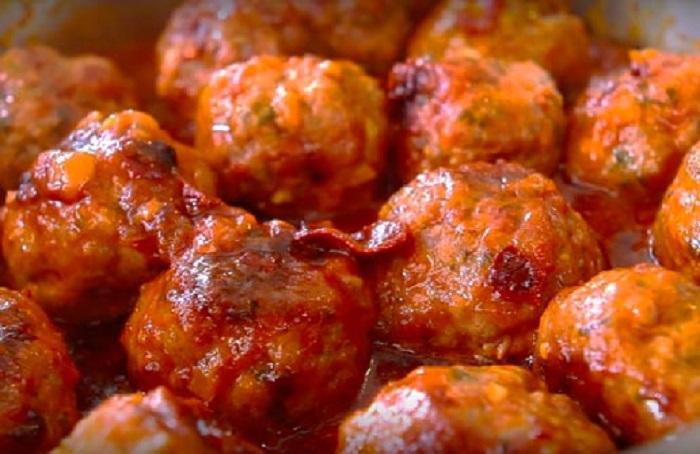 Помідори слід залити на 5 хвилин окропом, а потім облити холодною водою, щоб без зусиль зняти з них шкірку. Подрібнивши м’якоть помідорів, потрібно додати сіль, цукор і спеції (можна додати зелень, часник, кілька ложок сметани та інше). Після цього все перемішується і гаситься близько 15 хв на середньому вогні. Соус необхідно вилити в форму для запікання, а зверху викласти тефтелі. Запікається страва близько 30 хв при температурі 170 градусів до рум’яної скоринки.