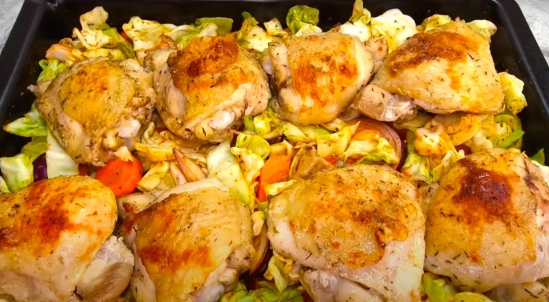 Запечені курячі стегна з капустою – страва, яка поєднує в собі практичність, насичений смак та домашній затишок. Завдяки гармонійному поєднанню м’яса та овочів, воно підходить як для повсякденної сімейної вечері, так і для подачі на стіл у вихідний день. Курячі стегна залишаються соковитими за рахунок природного жиру та правильного температурного режиму, а капуста – м’якою та ароматною, ввібравши м’ясні соки, спеції та приправи.