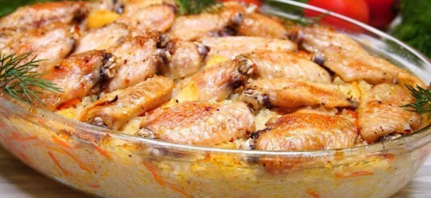 Крильця з рисом – часті гості на нашому столі. Страва дуже подобається всій родині плюс дозволяє економити час, оскільки не потрібно готувати окремо гарнір.