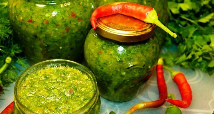 Зелена аджика готується з зеленого солодкого і гострого перцю, великої кількості зелені. Завдяки тому, що ви не будете її піддавати термічній обробці