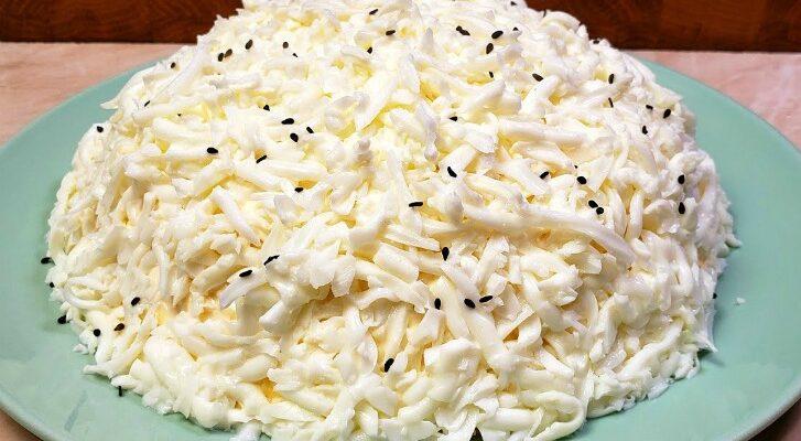Рецепт салату «Курка під снігом» багатьма господинями вважається одним з найбільш вдалих: продукти потрібні самі звичайні, готувати просто, подавати можна