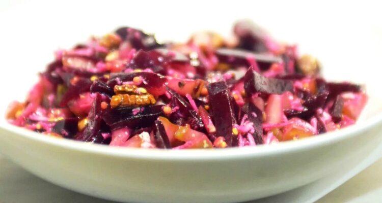 Салат «Царський» – це гармонійне поєднання буряка, солоного огірка і дуже незвичайної, гострої заправки, вам точно сподобається. Для приготування