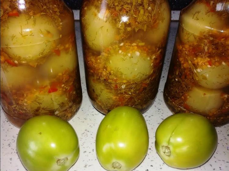 Зелені мариновані помідори давно користуються заслуженою славою. Пропонуємо вам простий рецепт, з яким ви заготовите цікаву закуску. Рецепт розрахований на 3 однолітрові баночки.
