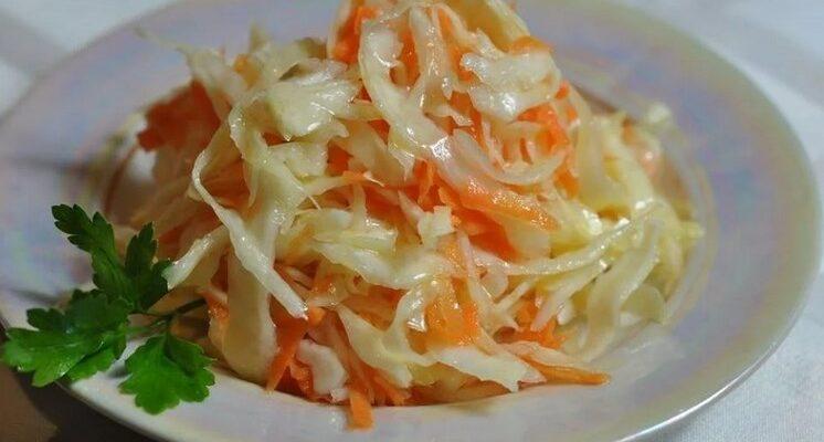 Приготовану за цим рецептом капусту можна вжити в їжу відразу ж, як тільки ви розмішайте компоненти. Але якщо капуста пару годин постоїть в холодильнику, то буде ще смачніша, я вам гарантую!