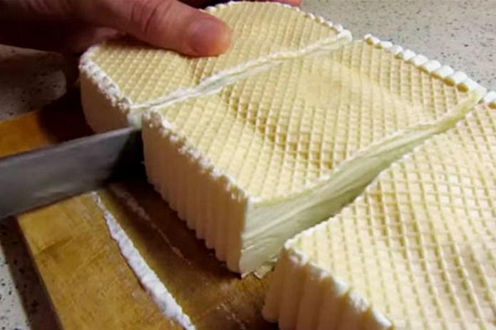 Збиті вершки зі згущеним молоком розкладаємо в вафельні стаканчики, їх ви можете купити окремо, а можна купити окремі вафлі для торта, і покласти їх в форму на дно, потім морозиво, і зверху ще вафля.