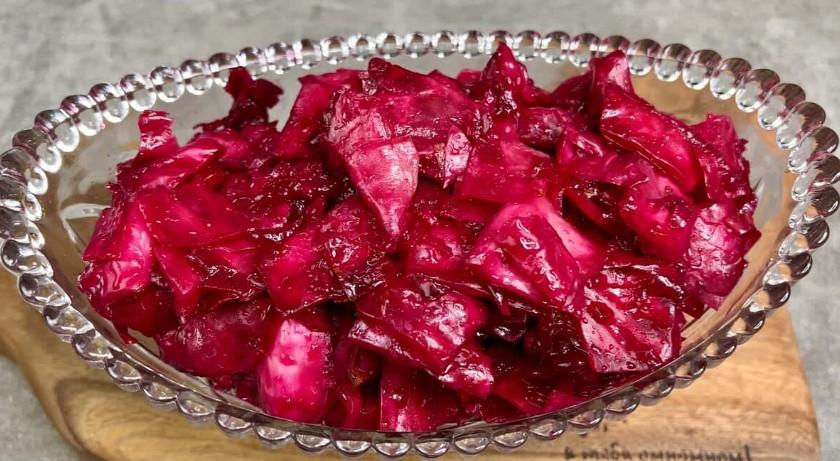 Капуста виходить шикарна як на вигляд, так і на смак! Буряк тут в жодному разі не зайвий, з ним смак абсолютно інший! Про смак цієї капусти можна писати нескінченно, але я все ж рекомендую випробувати рецепт і переконатися в цьому самостійно!