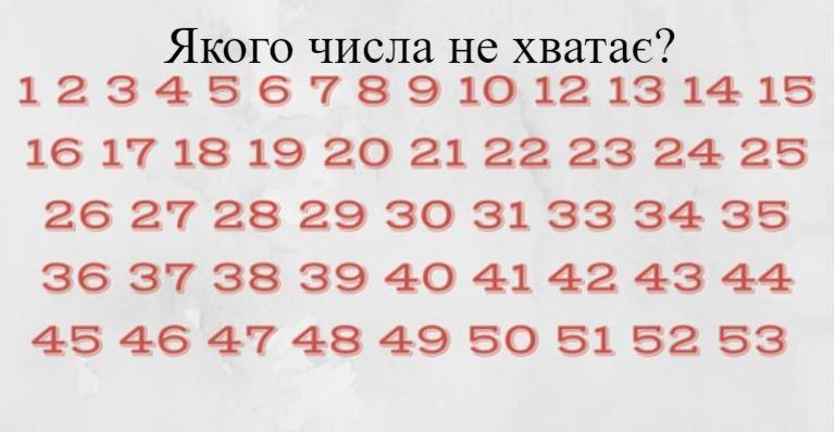 Хочете дізнатися наскільки ви уважні? Тоді пройдіть наш простий тест! На зображенні потрібно знайти число, якого не вистачає. Але зробити це потрібно максимум за 10 секунд.